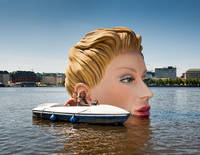 Wer badet denn da in der Binnenalster? Hamburger und Gäste staunen über die 4 mal 20 Meter große Nixe, die der Kreative Oliver Voss für 10 Tage zu Wasser gelassen hat.