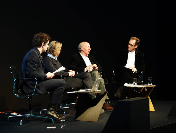 Moderator Marcus Fairs, Creative Director Mike Meiré, Autor und Kritiker Thomas Wagner, Architekt und Designer Matteo Thun (v.l.)