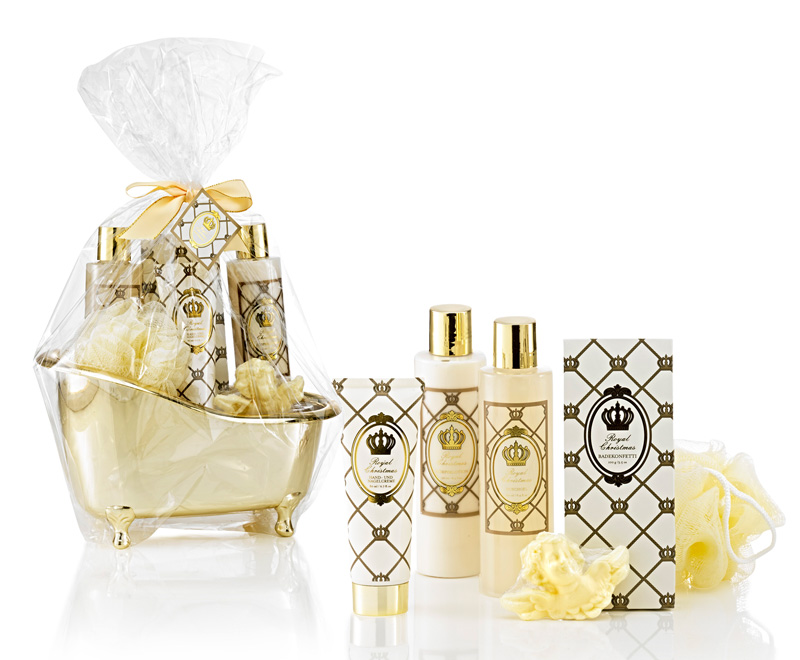 - Hier tummelt sich eine komplette Pflegefamilie mit feinem Mandelduft in der Badewanne: Duschgel, Body Lotion, Hand- und Nagelcreme, Badekonfetti, Badeseife und Peelingschwann. "Geschenkset Badewanne groß" um 20 Euro