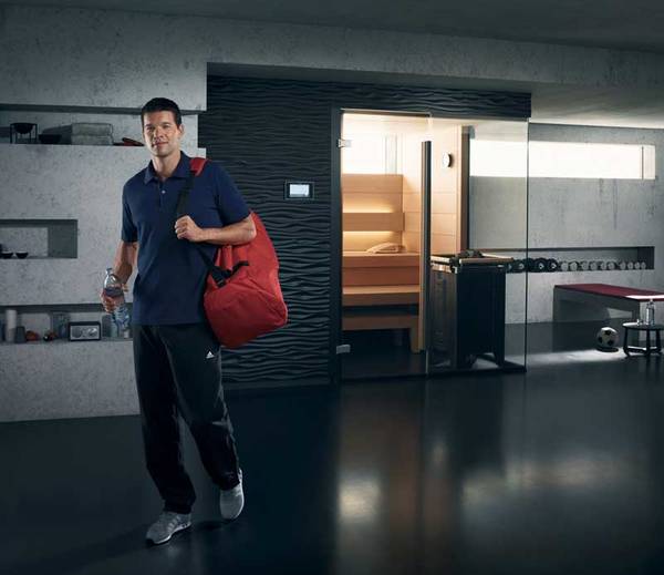 Michael Ballack legt als aktiver Sportler viel Wert auf reichliche Flüssigkeitszufuhr. „Die Sauna beugt Muskelkater vor, entspannt von körperlichen Anstrengungen und wie nebenbei hilft sie auch der Entschlackung des Körpers, wenn man ausreichend trinkt.“