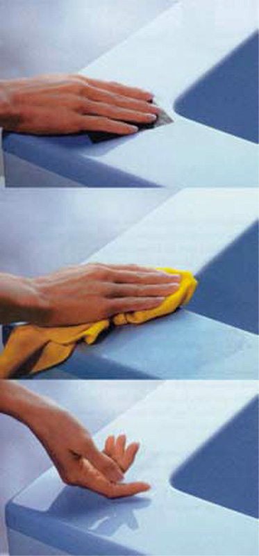 Zur Beseitigung leichter Kratzer bei glänzender Oberfläche sind die Spezialreiniger der jeweiligen Acrylwannenhersteller, z. B. aus dem HOESCH Pflege-Set, ideal oder auch Marken- Metallpolierpasten.