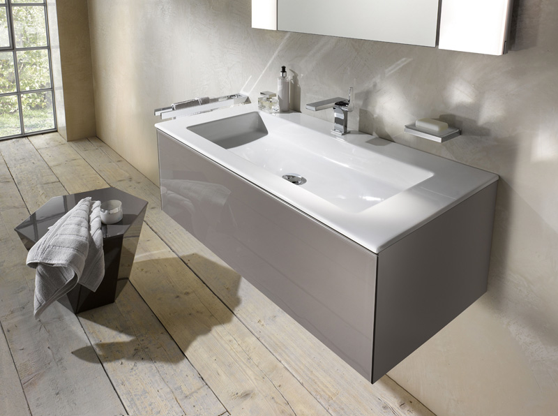 Keuco hat sein Badeinrichtungskonzept Edition 11 um Glasoberflächen erweitert. Diese sind sowohl aus klarem oder satiniertem Glas in Weiß oder Cashmere erhältlich. Kombiniert werden die hellen, warmen Farbtöne mit Naturtönen wie Trüffel und Anthrazit sowie Schwarz und Violett. Auch Eiche-Echtholzfurnier wird angeboten.