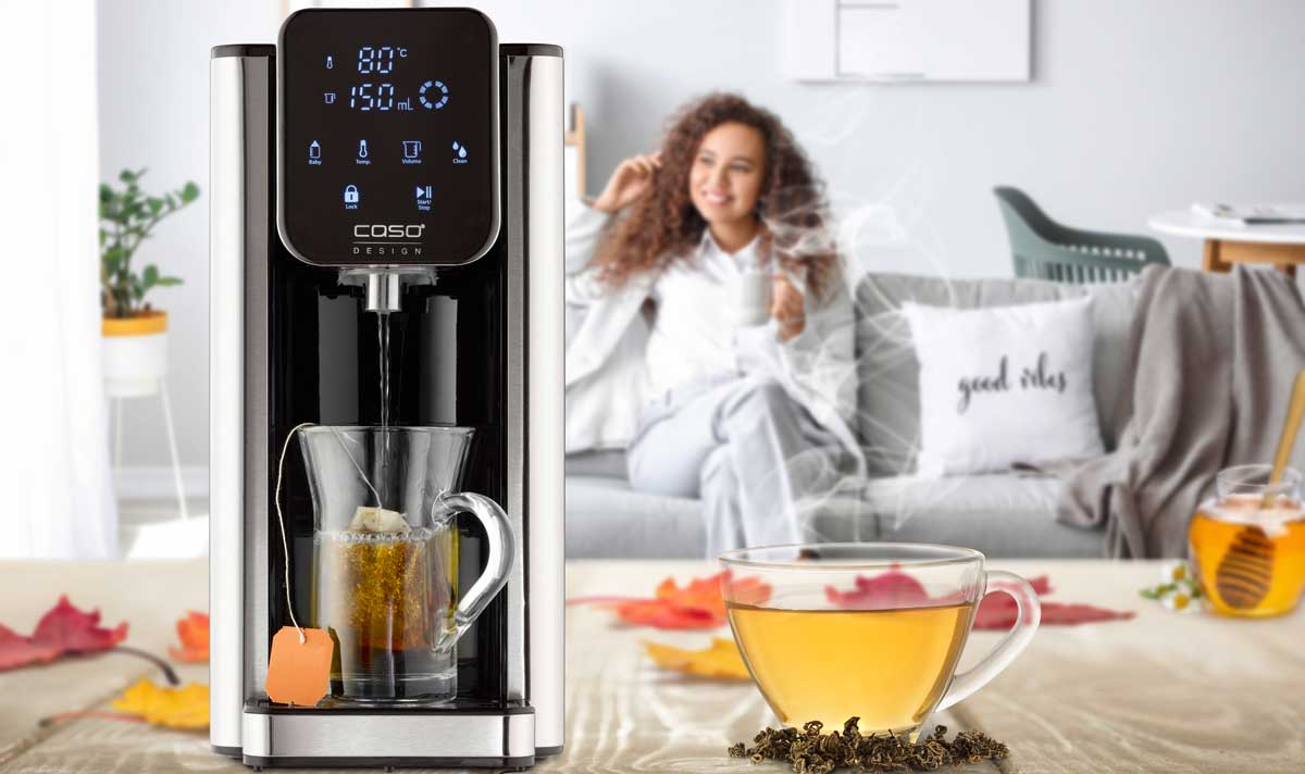 Der Turbo-Heißwasserspender HW 666 Inox von CASO Design soll Wasser sekundenschnell in genau der benötigten Temperatur und Menge erhitzen. Das spart bis zu 50 % Energie gegenüber einem handelsüblichen Wasserkocher (Quelle und Fotos: Caso).