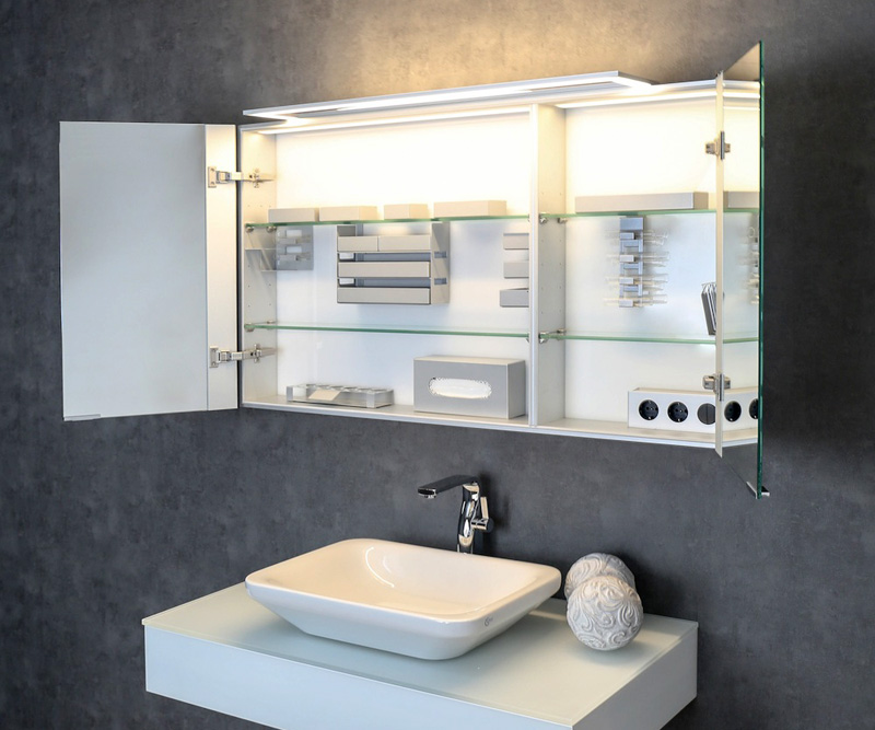 Praktisch ist auch der Einbau. Die „Interio-Line“ lässt sich ganz einfach in alle Spiegelschränke der Sprinz-Serien Classical-, Modern-, Elegant- oder Silver-Line integrieren – ganz ohne Bohren oder Schrauben. Die Elemente werden einfach in die vorhandenen Glaseinlegeböden eingehängt und sind allein deswegen schon variabel positionierbar.