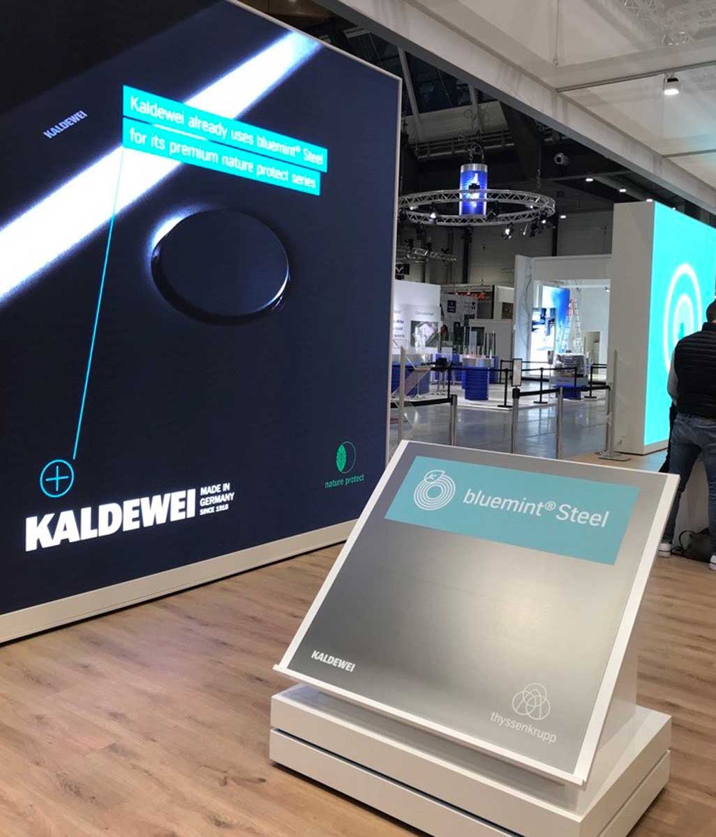 Mit dem Einsatz von bluemint Steel von Thyssenkrupp hat Kaldewei Anfang Oktober eine neue Ära in der sanitären Fertigung eingeläutet. Jetzt kommen die ersten Premium-Produkte aus dem klimafreundlichen Stahl in den Handel. 100% CO2 werden bei Thyssenkrupp bei der Stahlproduktion eingespart. Berücksichtigt man die Emissionen aus der Vorkette wie Förderung und Transport der Rohstoffe weist das Endprodukt einen um 70% geringeren CO2 Fußabdruck nach dem international anerkannten Green-House-Gas-Protocol (GHG) aus. In einer limitieren Auflage werden die Waschtischschale Miena, die Badewannen Puro und Puro Duo sowie die neue Duschfläche Superplan Zero unter der Submarke Kaldewei nature protect ab sofort über ausgewählte Händler vertrieben.