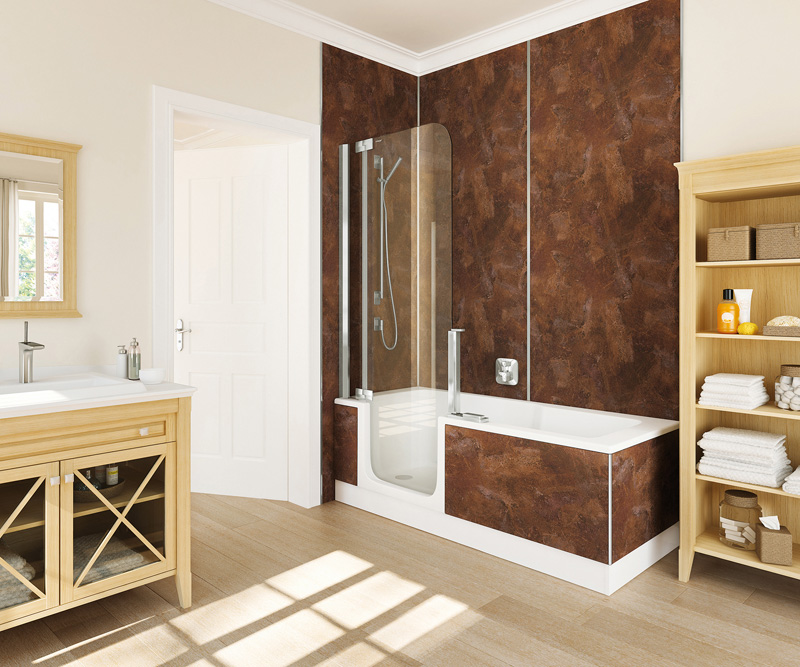 Die ideale Wandverkleidung für die Teilsanierung ist Artwall. Diese speziell für die Anwendung im Badezimmer entwickelten großformatigen Designplatten vereinfachen die Badrenovierung in Teilbereichen oder auch im Ganzen. Sie können über alle herkömmlichen Verfliesungen und Wandbeläge nahezu staubfrei montiert werden. An den großflächigen, fugenlosen Elementen finden Staub und Kalk keinen Halt. Die Verbindung der Elemente erfolgt über Aluminium-Verbindungsprofile. Auch in der Höhe sind die Wandpaneele variierbar und können in verschiedenen Farben an die individuellen Wünsche angepasst werden. Die Palette von edlem Dunkelgrau, stimmungsvollem Sand oder kräftigem Braun und Bordeaux werden durch Oberflächen im industriellen Chic wie Beton, Rost oder Schiefer ergänzt. Die Farben und Oberflächen können auch als Twinline Wannenschürzen eingesetzt werden.