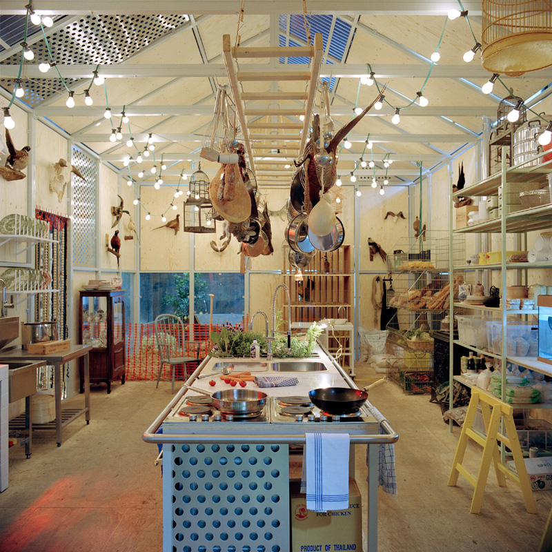 Zuvor auf dem diesjährigen Salone del Mobile in Mailand präsentiert, bot das Freilichtmuseum beim Mühlenhof am Aasee den optimalen Rahmen für das eindrucksvolle Küchenszenarium „The Farm Project“ von Mike Meiré – seines Zeichens Designer, Art Director und seit 1996 Kurator der Dornbracht Culture Projects. ‚The Farm Project’ ist der Versuch, das Leben, das mit zunehmend minimalistischen Entwürfen in die Schränke und unter die Oberflächen verbannt wurde, zurück in die Küche zu holen. Schon von außen widerspricht die „Farmküche“ architektonischen Fassaden-Harmonien und zeigt sich im kreativen Patchwork aus allen möglichen Materialien. Das macht neugierig. Innen herrscht auf den ersten Blick das Chaos. Bei näherer Betrachtung erkennt man das Konzept: Ein lebendiges Durcheinander von Düften, Zutaten und Gewürzen, von Besteck, Geschirr, Pfannen und Töpfen. Und - kaum zu glauben: liebenswertes Borsten- und Federvieh, friedlich fressend im integrierten Gehege beziehungsweise Käfig. Die Küche als Ort der Toleranz, an dem Essbares und Trinkbares, Küchenwerkzeuge und Rezepte aus aller Welt neben- und miteinander koexistieren. Ein Raum vielfältigster künstlerischer, architektonischer, kultureller Begegnungen – eine Bühne des Lebens.