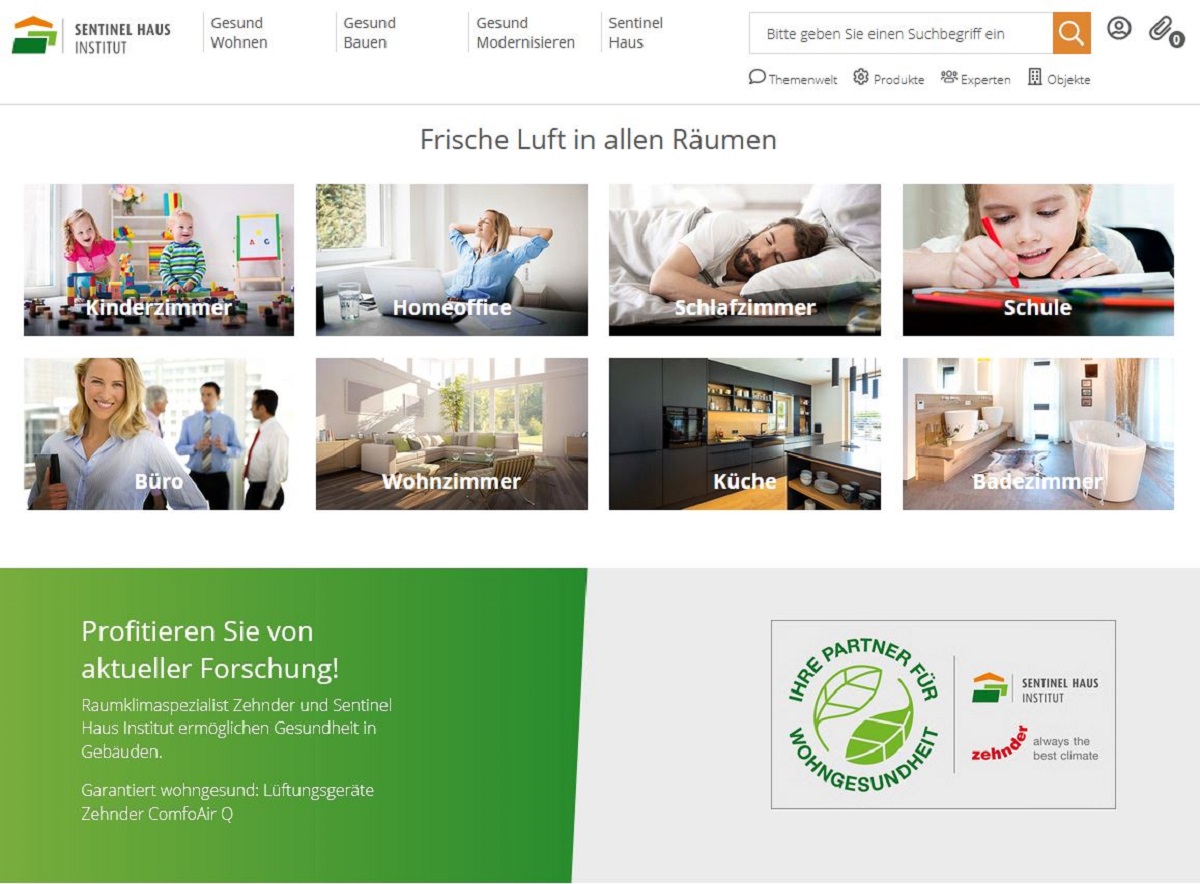 Der internationale Raumklimaspezialist Zehnder und das Sentinel Haus Institut, Markt- und Wissensführer bei Konzepten für geprüft gesündere Gebäude, präsentieren im Zuge ihrer Partnerschaft ein neues, umfangreiches Wissensportal. Bauherren erhalten hier Informationen über alle Aspekte wohngesunden Innenraumklimas (Quelle und Fotos: Zehnder).