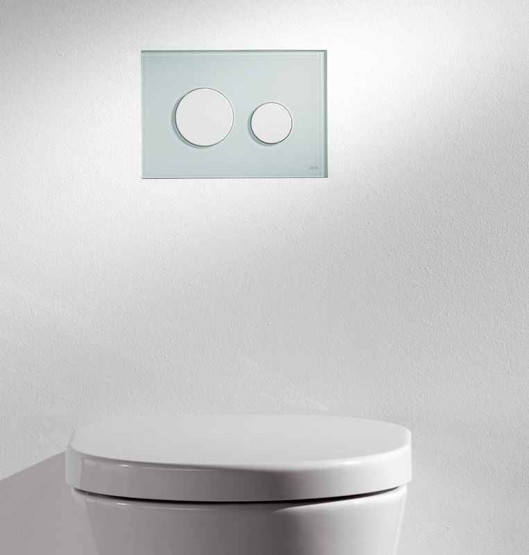 Klarer Design-Favorit: flächenbündige WC-Betätigungsplatte aus Glas