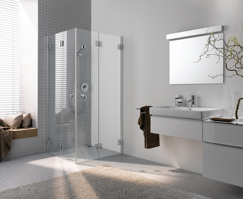 Wenn die Bäder nicht größer werden müssen kreative Lösungen her, um auch auf kleiner Fläche den Spagat zwischen verfügbarem Raum und gewünschtem Komfort zu schaffen. Die hochtransparente und rahmenlose Abtrennung für bodenebene Eckduschen von Koralle by Antonio Citterio eröffnet völlig neue Möglichkeiten speziell für kleine Badausstattungen im mittleren Preissegment.