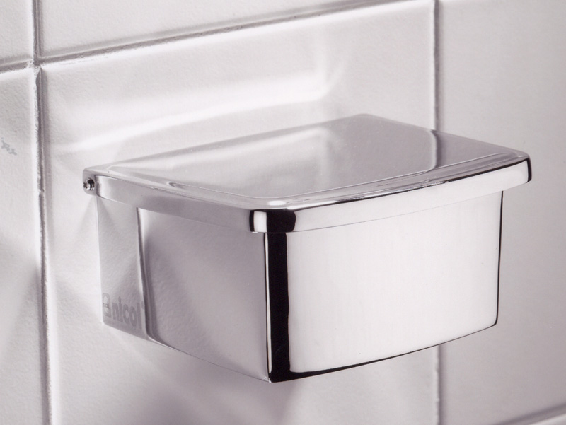 Feuchtpapierbox: Messing hochglanz verchromt, als Standbox, zur Wandmontage und an der Bürstengarnitur der Serie COMO zu befestigen