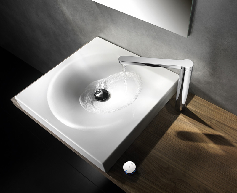 Über eine Tipp-Funktion wird das Wasser zum Fließen gebracht. Ein LED-Lichtring signalisiert mit den Farben Blau (kalt), Orange (lauwarm) und Rot (heiß) die Wassertemperatur. Die Bedieneinheit kann beliebig am oder rund um den Waschtisch platziert werden - ein wichtiger Aspekt auch bei barrierefreien Bädern. Flexibilität und Komfort deluxe bietet zusätzlich zur fest installierten Bedieneinheit die Wireless-Variante: Wasser marsch via Funk.