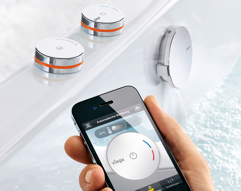 So komfortabel wurde selten Wasser in die Wanne gelassen: Die neue App für die Viega Armaturen Multiplex Trio E3, E2 und E lassen sich über WLAN mobil aus der gesamten Wohnung steuern.