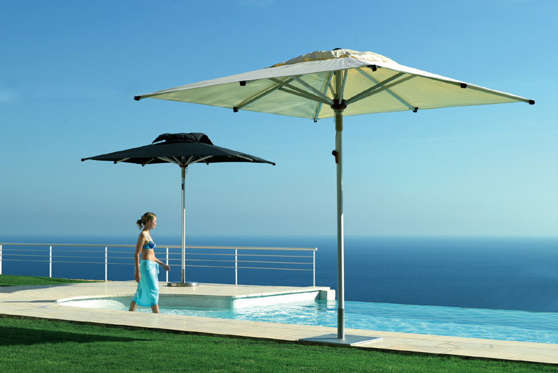 Zugegeben: Sonnenschirme gibt es wie den buchstäblichen Sand am Meer. In jeder Farbe, Form, Größe und Handhabung sind sie zu haben. Ein besonders schönes und gleichzeitig robustes Allround-Talent bietet der Hersteller Tribù. Eclipse gibt’s in rund und in eckig, wahlweise mit verschiedenen Füßen aus Metall, mit oder ohne Rollen. Die Aufspann-Konstruktion lässt sich bequem per Flaschenzugsystem und ist ebenfalls für eine lange Lebensdauer ausgelegt.