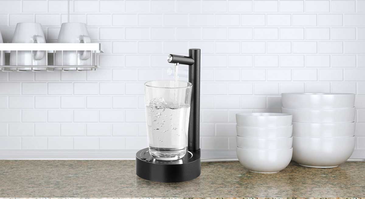 Jederzeit und überall Trinkwasser zapfen? Die Akku-Trinkwasser-Pumpe von Rosenstein & Söhne macht´s möglich. Mit dem 7-stufigen Wasserauslauf lässt sich schnell und einfach Wasser in ein Glas füllen, das sicher auf dem Becherhalter steht (Quelle und Fotos: Pearl).
