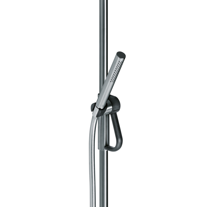 Auch der Brausekopfhalter FSB 82 8239/ 82 8260 folgt der FSB-Philosophie des sicheren Greifens. So lassen sich Höhe, Neigung und Ausrichtung bequem einhändig verstellen – die andere Hand bleibt frei und gibt dem Benutzer die Möglichkeit, sich an einem Haltegriff festzuhalten. Das Lösen des Haltemechanismus erfordert kaum Kraft und ist ohne Drehbewegung der Hand bequem möglich. Nach dem Lösen der Arretierung liegt der FSB-Brausekopfhalter sicher in der Hand und kann individuell positioniert werden. Bauseits lässt sich der Brausekopfhalter mühelos von „rechts“ auf „links“ umbauen – je nachdem, wo der Brausekopf gehalten werden soll. Individuell einstellbar ist außerdem die Klemmwirkung der Arretierung: Das ist nicht nur sehr komfortabel für ältere oder in ihrer Bewegung eingeschränkten Menschen, sondern berücksichtigt auch die Bedürfnisse von Kindern. Sollte der Brausekopf in der Dusche einmal zu hoch stehen, lässt er sich – bei entsprechender sanfter Einstellung der Arretierung – bequem am Schlauch nach unten ziehen, ohne dass der Schlauch beschädigt wird. Innerhalb des ErgoSystems® kann der Brausekopfhalter entweder mit Haltegriffen oder Handlaufkombinationen verbunden oder frei auf der Wand positioniert werden. Die zugehörigen Brausestangen fertigt FSB auch in indiviueller Länge.