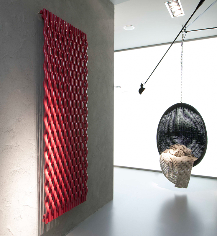 Von Stefano Giovannoni stammt das außergewöhnliche Design der Heizkörper Trame von Tubes. Farbige Fäden aus Stahl werfen wie Schuss- und Kettfäden zarte Bilder an die Wand.