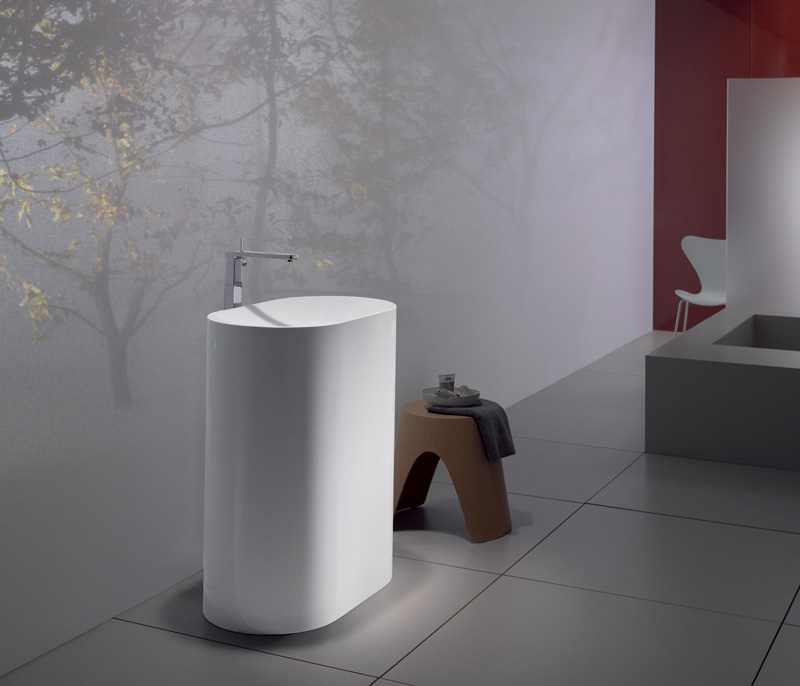 Die neuen Alape-Säulenwaschtische erheben das Bad zum "Kunstraum"
