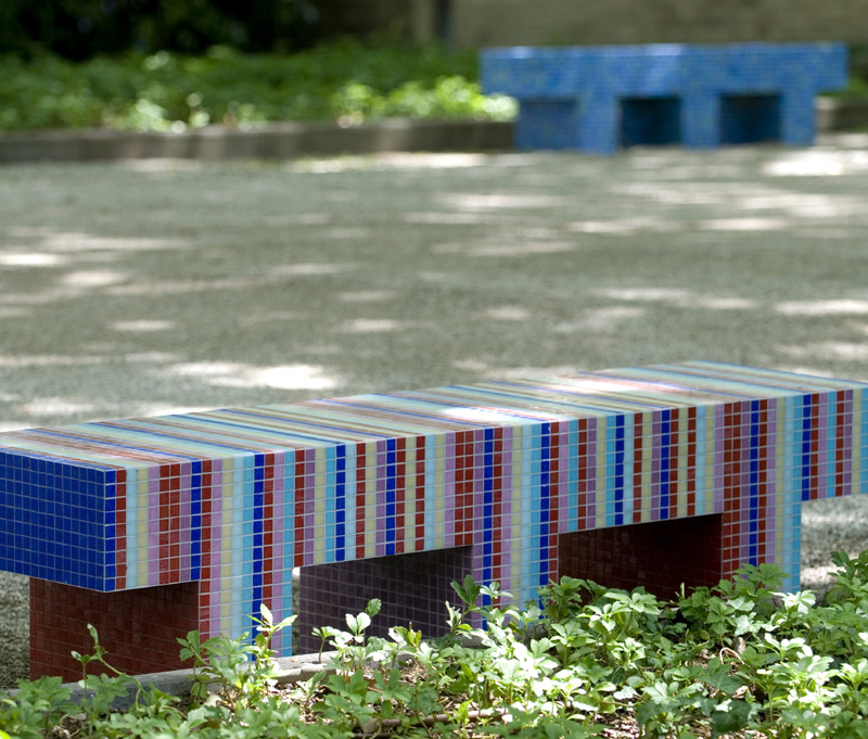 Mit Bisazza Glasmosaik gestaltete Bänke
