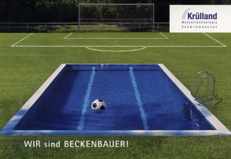 Mit einer treffsicheren Idee macht Schwimmbadspezialist Krülland deutlich, wo seine Kompetenzen liegen. Das vielseitige Angebot an unterschiedlichen Becken aus Stahl oder Aluminium wird ergänzt durch ein reichhaltiges Zubehör