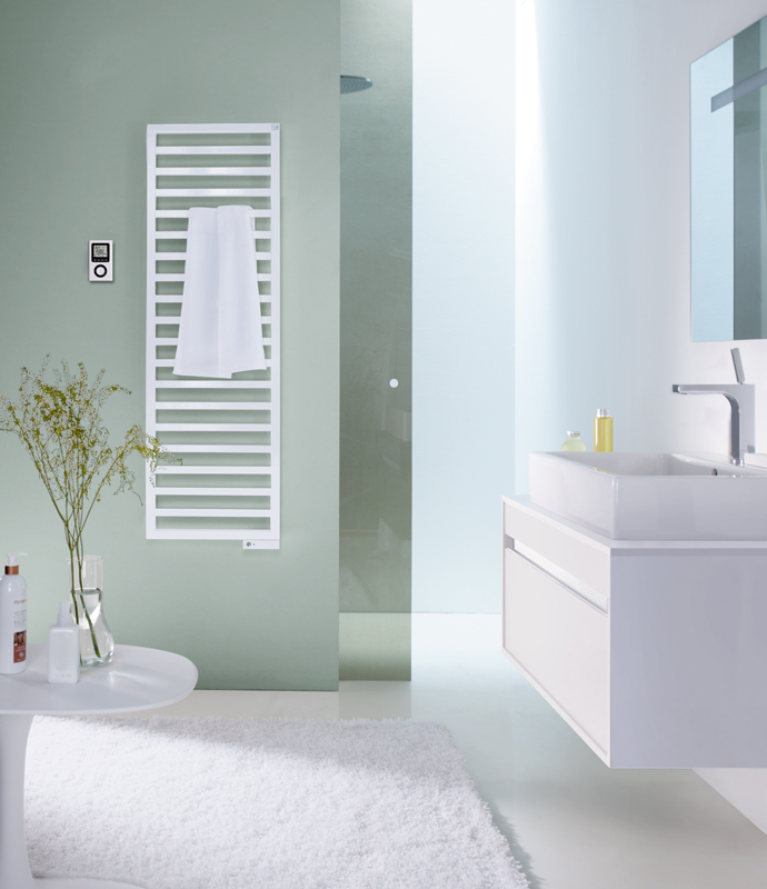 Man erkennt sofort den typischen Bauhausstil: Den rechten Winkel. Dabei unterstützt – ebenfalls ganz im Sinne der Bauhaus-Schule – die Form die Funktion: Nicht nur die Winkelkonsolen sind beim Zehnder Quaro rechteckig, auch die Heizrohre selbst. Daraus erhöht sich der Strahlungsanteil für den Wärmekomfort im Badezimmer zusätzlich. Und durch die gleichmäßigen und großen Rohrabstände wird nicht nur die puristische Optik verstärkt, sondern auch das bequeme Einlegen von Handtüchern erleichtert.