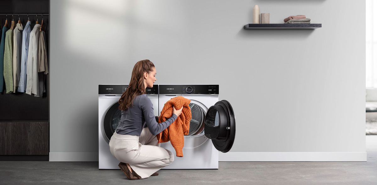 Mit modernen Wärmepumpentrocknern lässt sich Kleidung umweltbewusst und schonend trocknen (Foto: Siemens)