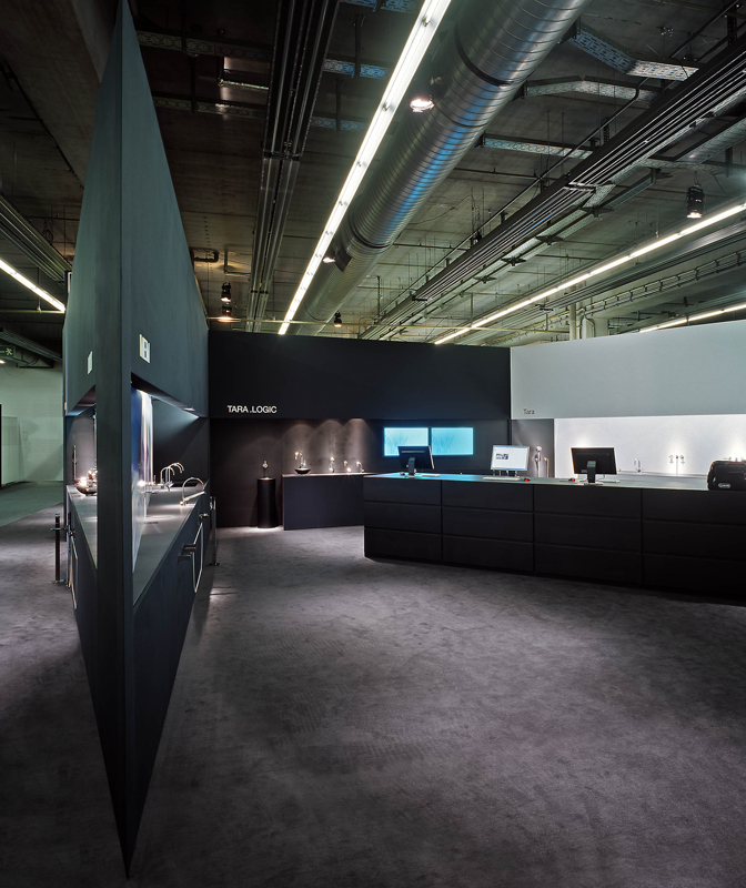 Das Hauptaugenmerk des Stands lag auf dem Pavillon, in dem das neue Produktprogramm Elemental Spa in Form einer Ritual-Architektur wie auf einer Bühne präsentiert wurde. Fließendes Wasser und außergewöhnliche Materialien wie Cortenstahl, Marmor und Kupfer schufen eine eigene Welt innerhalb des Gesamtkonzepts. Ein in Holz ausgestattetes Kulturcafé präsentierte die Dokumentationen der Dornbracht Culture Projects und bot einen in sich geschlossenen Ruhepol innerhalb des hektischen Messegeschehens.