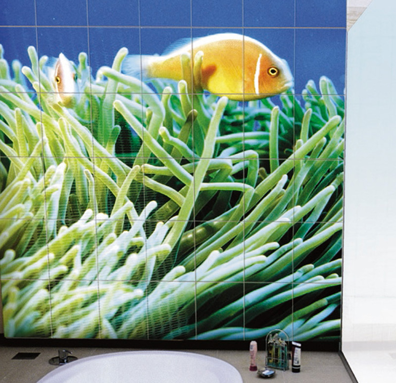 Es ist so einfach wie im Fotostudio. Wenn die Wahl für das Motiv einmal getroffen ist und die Vorlagen in der entsprechenden Größen bereitstehen, bleibt nur noch eine Frage: matt oder glänzend? Die ausgewählten Motive können als Print oder als digitale Dateien zur Verfügung gestellt werden, wobei sich sämtliche gängigen Formate (jpg, tif, eps) umsetzen lassen. Um die Fotos in gewohnter Qualität auf die Keramik brennen zu können, ist eine hohe Auflösung von 300 dpi erforderlich. Als Papierabzug sollten die Bilder in einer Ausgangsgröße zwischen 10 x 15 cm und 30 x 40 cm vorliegen. Sind die Motive mittels innovativer Brenntechnik auf die Wandfliese gebrannt, heißt es nur noch verfliesen – fertig.