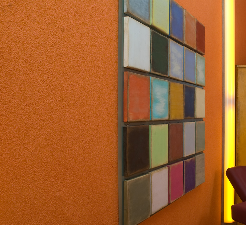 Wand- und Deckenflächen außerhalb des Spritzwasserbereichs erhalten jetzt ein schickes Kleid aus einem neuartigen Dekorputz, der zu 80 Prozent aus reiner Schurwolle und zu 20 Prozent aus Seide besteht. Das allein klingt schon sehr „gesund“. Die Fakten: Der Putz kann bis zu 33 Prozent des Eigengewichts an Feuchtigkeit aufnehmen und bei Bedarf wieder an die Umgebung abführen. Feuchtigkeit, die in einem Schwimmbad permanent vorhanden ist oder die beim Baden oder Duschen entsteht, wird aufgefangen und auf die gesamte Wandfläche verteilt.