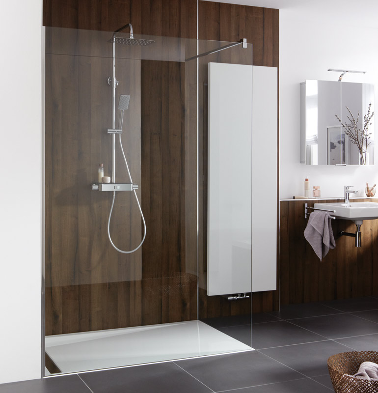 Das neue Wandanschlussprofil der Walk In Pro ist vor allem eins: schlank. Es lässt sich auf der Verfliesung bequem in der Fliesenfuge montieren, hat aber auch auf Putz einen sicheren Stand. Das Einbauen ist denkbar einfach. Die breite Frontglasscheibe aus 8 Millimeter dickem Einscheiben-Sicherheitsglas wird in das zuvor montierte Wandprofil eingeschoben und ausgerichtet. Durch ein spezielles Kedersystem wird die Scheibe dauerhaft und zuverlässig gehalten. Ein solider Glanzmetall-Stabilisationsbügel sorgt für zusätzliche Standfestigkeit. Die Frontglasscheibe gibt es in den Standardmaßen bis 140 Zentimeter Breite oder als Sondermaß mit bis zu 180 Zentimetern. Die verchromten Wandprofile sind jeweils in zwei Höhen lieferbar, standardmäßig mit 200 Zentimetern und optional mit 220 Zentimetern. Die jeweiligen Glasarten reichen von Grau- bis Spiegelglas.