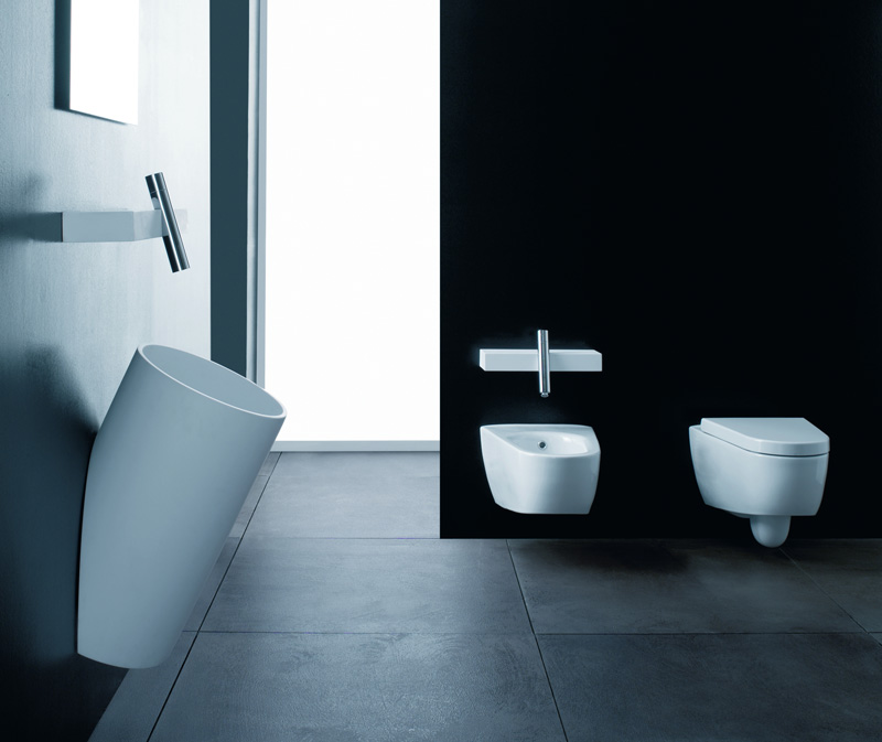 Um alle Wünsche in Sachen Badausstattung erfüllen zu können, gibt es sämtliche Blok-Armaturen für Waschbecken, Dusche, Bidet und Wanne, vom klassischen Einhebelmischer bis zur Regenbrause. Die Konsolen und die dazu passenden Sanitärobjekte bestehen aus Cristallplant, einem Material aus Mineralstoffen und Harzen.