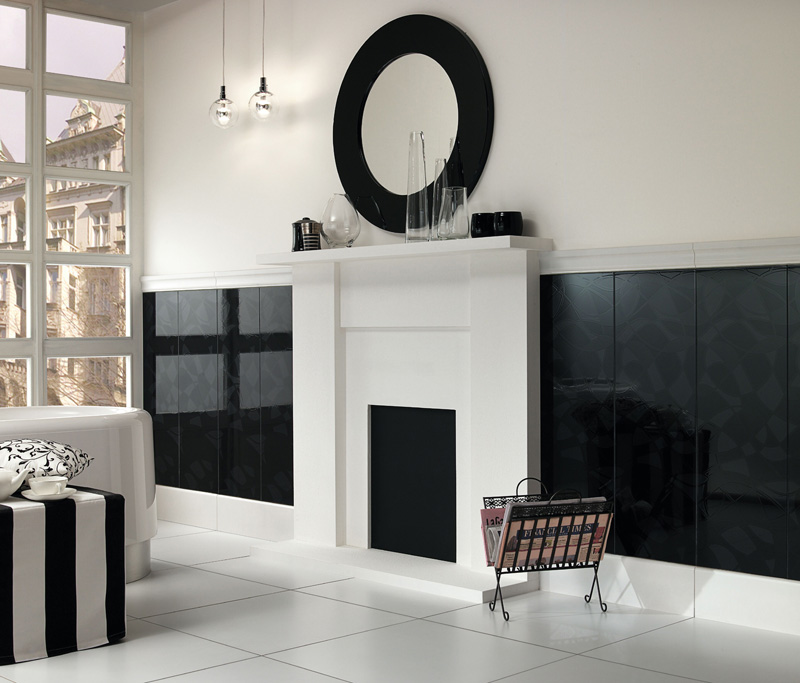 BiancoNero ist ein modulares Wand- und Bodenkonzept, das auf innovative Oberflächen setzt, und den langfristigen Trend des Schwarz-Weiß-Looks in Keramik interpretiert. Neu ist der dreidimensional wirkende Ton-in-Ton-Dekor Graffiti in Schwarz oder Weiß. Die weichen Formen des grafischen Motivs erinnern an Graffiti oder die Bleiverglasungen alter Fenster. Der Dekor kann horizontal und vertikal an der Wand verlegt werden und verleiht schlicht-modernen oder klassisch inszenierten Räumen durch das Spiel von Weite und Tiefe ein völlig neues Raumgefühl.