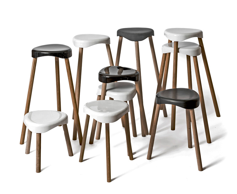 Mit der Hockerfamilie H3 beweist der Architekt und gelernte Schreiner Robert Kern, dass die klassische Designaufgabe „Hocker“ immer noch Überraschungen zulässt.