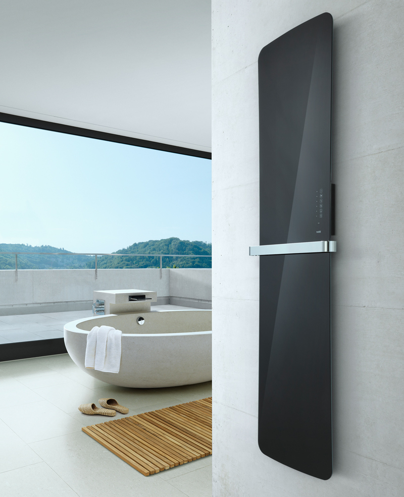 Mit drei Temperatureinstellungen (45°C, 55°C und 65°C) sowie einer Timer-Funktion sorgt Runtal Folio Glass für ein besonders angenehmes Raumklima. Via Fernbedienung oder direkt am intuitiven Touch-Bedienelement des Designheizkörpers ist eine einfache Bedienung mit nur einer Berührung garantiert. Optional können bis zu zwei elegante Handtuchhalter direkt an der Glasoberfläche positioniert werden, für angenehm vorgewärmte und im Handumdrehen trockene Handtücher.