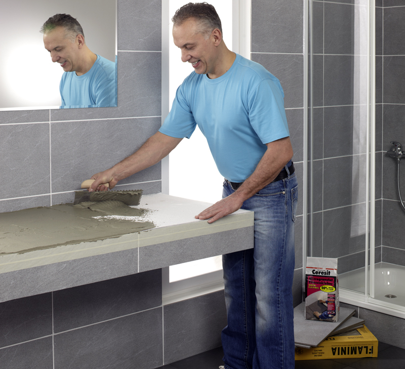 Mit hochwertigen Systemprodukten, zum Beispiel von Ceresit, lässt sich jedes Fliesen-Projekt problemlos angehen. Gute Verarbeitungseigenschaften bietet etwa Ceresit Microgranulat Fliesenkleber Hochflexibel. Der Clou: Bis zu 90 Prozent weniger Staub beim Ausschütten und Anrühren sowie höchste Ergiebigkeit kennzeichnen diese Produktinnovation. Das bedeutet größtmögliche Verarbeitungssicherheit für den Verbraucher.