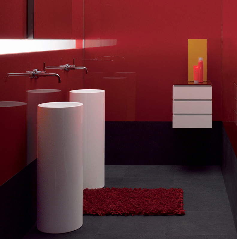 Mit den Produktfamilien WT.RS, WT.IC und WT.QS bietet Alape ein breites Sortiment an universell einsetzbaren und präzise geformten Waschtischen für das Gäste-WC und deckt damit wesentliche Geometrien im Bad ab: Kreis im Kreis, Kreis im Quadrat und Quadrat im Quadrat. Eins haben alle Modelle gemeinsam: die Außenabmessungen von 325 mm. Durch ihre geringe Ausladung sind die Waschtische aus glasiertem Stahl optimal zur Einbindung in kleine Räume geeignet. Zudem sind sie auch als bodenstehende Säulen erhältlich, die frei oder mit Wandanbindung im Raum positioniert werden können. Die Säulenwaschtische aus der WT.RX-Familie (großes Bild oben) verleihen insbesondere kleinen Räumen Tiefe – und wirken als selbstbewusste solitäre Objekte.