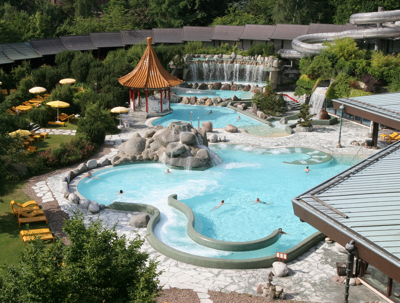 1.200 Quadratmeter Thermal-Solewasserlandschaft, Wasserfälle, Hot-Whirl-Pools, Dampfbäder, Vital-Solarien, neun moderne Saunen, ein 106 m lange Abenteuer-Rutschbahn, Infrarotwärme-Kabinen, Solegrotte und ein asiatischer Duftgarten versprechen Badefreuden der Extraklasse und lassen bei den Besuchern keine Wünsche offen.