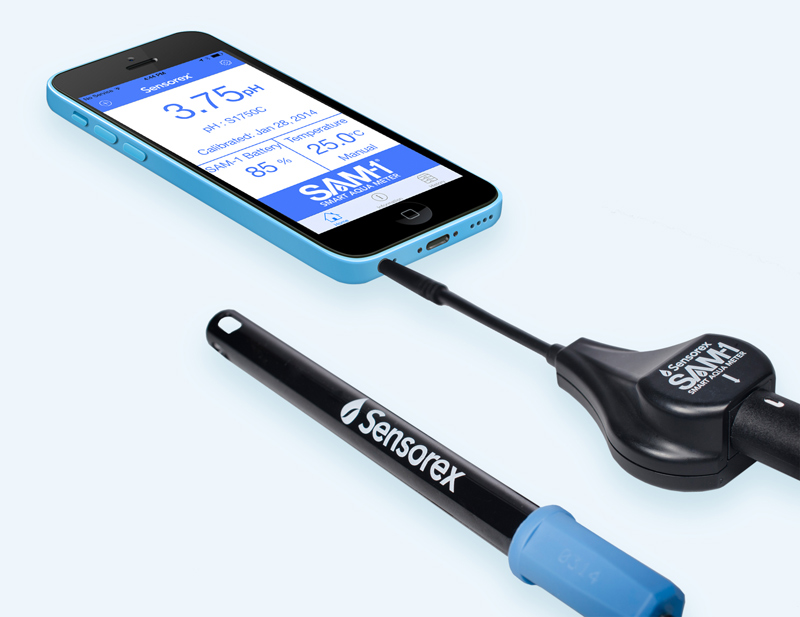 Das intelligente Wasser-Messgerät SAM-1 von Sensorex nutzt den Komfort tragbarer Geräte, um pH-Werte, Redoxpotential, Leitfähigkeit und Temperaturen zu messen und zu speichern.
