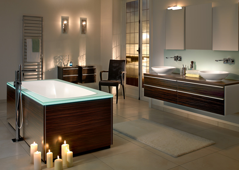 Ein besonderes Highlight für das Badambiente bietet die Randgestaltung My Art Emotion. Neben der Standard-Version in Quaryl wird My Art mit zwei unterschiedlichen flächenbündigen und pflegeleichten Rändern angeboten – in schwarzem Verbundwerkstoff und aus Glas. Als exklusives Extra unterstreicht ein Lichtkonzept das feine Design. Verschiedene Farbtöne können über ein Bedienfeld im Wechselspiel angezeigt werden. So entsteht mit My Art Emotion ein außergewöhnliches Lichtambiente, in dem das Baden zu einem intensiven Erlebnis für die Sinne wird.