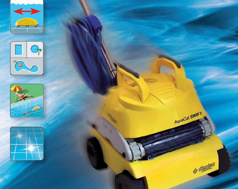 Er ist ein echter Einzelkämpfer, und dort wo er im Einsatz war, bleibt nichts zurück als Sauberkeit. Mit dem vollautomatischen Reinigungsroboter AquaCat SWIFT hat dinotec, Marktführer im Bereich der elektrischen Schwimmbad Reinigungsgeräte, einen echten Knüller aufgelegt. Er säubert mühelos alle Beckenformen und -oberflächen und ist dabei kinderleicht zu bedienen: Zu Wasser lasse, anschalten und los geht’s. Den Rest erledigt der intelligente Roboter ganz allein.