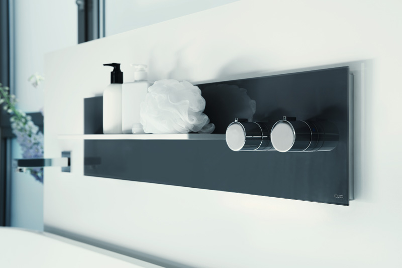 Sieht aus wie ein Regalelement, ist aber bei näherer Betrachtung eine außergewöhnliche Armatur. Die Keuco Innovation hat bereits einen bedeutenden Designpreis abgeräumt.