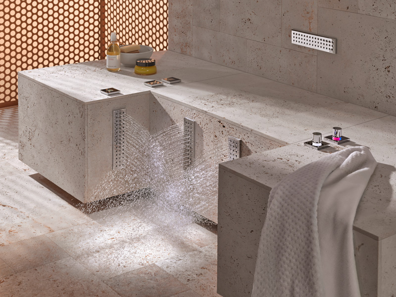 So entspannend: Mit der neuen Duschanwendung Comfort Shower bereichert Dornbracht den Spa-Bereich um eine bisher einzigartige Wassererfahrung im Sitzen.