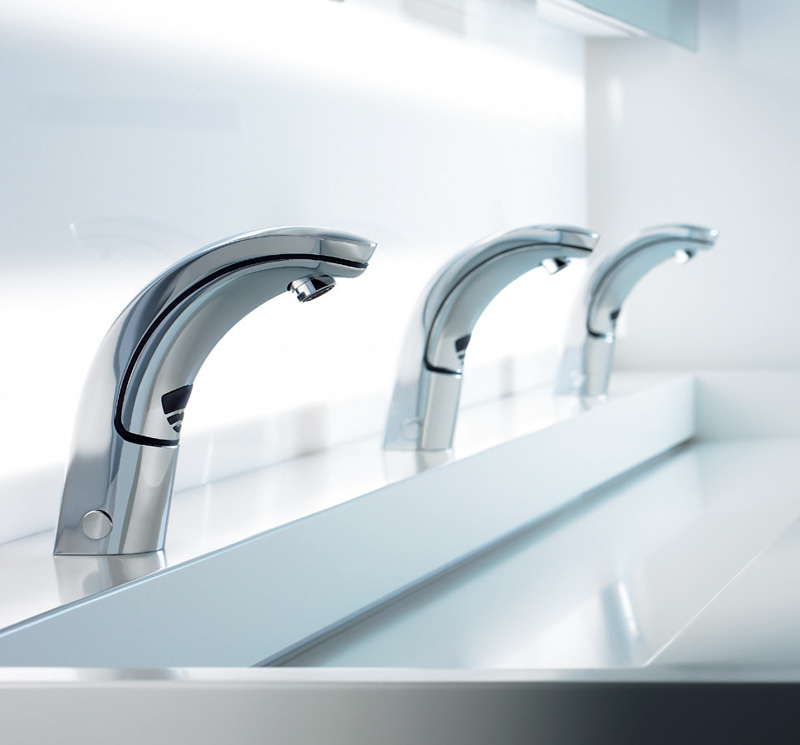 Das Robert Koch Institut rät dazu, die Hände zwischen 20 und 30 Sekunden lang gründlich einzuseifen. Aber was nützt die ausgiebige Reinigung der Hände, wenn man direkt danach den Wasserhahn, den schon andere vor dem Einseifen berührt haben, wieder zudreht? Berührungslose Armaturen sind hier eine prima Idee: Nähert man sich dem eingebauten Sensor, beginnt das Wasser zu fließen. Automatisch stellt sich der Wasserfluss nach dem Händewaschen auch wieder ab.
