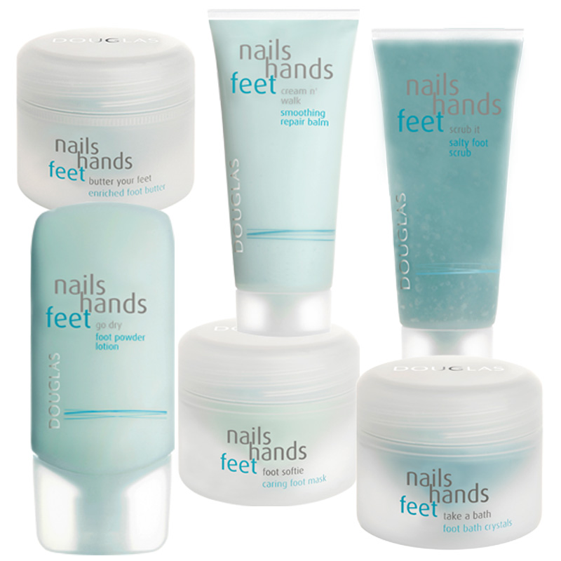 Bisher gab es das exklusive Douglas Programm „nails hands feet“ für exzellent gepflegte Hände und Fingernägel. Als dritte im Bunde hat sich nun die Fußpflegelinie dazu gesellt. Ein perfektes Wohlfühlpaket zum Peelen, Erfrischen und Pflegen.