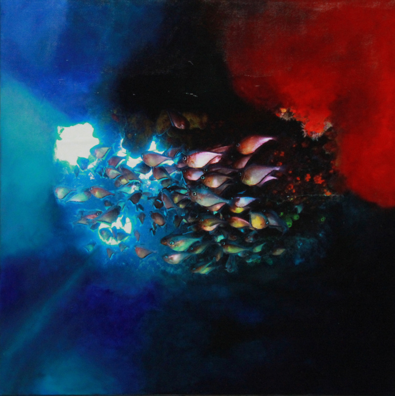 In regelmäßigen Abständen taucht Künstlerin Sonja Brockers ab. Die Kamera immer im Anschlag, findet sie unter Wasser viele Motive, die Grundlage für ihre Kollagen aus Foto und Malerei sind. Das können Wracks sein oder die unterschiedlichsten Meeresbewohner, die Modell stehen bzw. schwimmen.