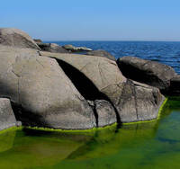 Blaualgen treiben Blüten wie noch nie: Größer als die Bundesrepublik ist der Teppich aus giftigen Cyanobakterien, der derzeit mit rund 377.000 Quadratkilometern weite Teile der Ostsee bedeckt. Deutsche Urlaubsregionen sind bis jetzt nicht betroffen.