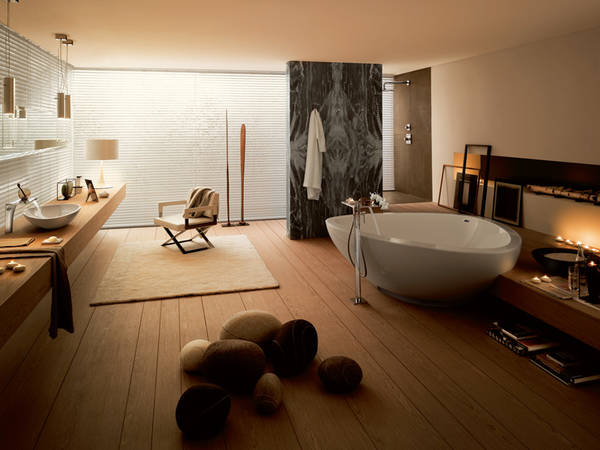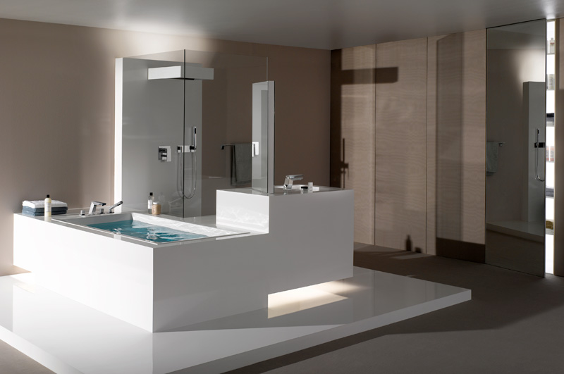 Unten links: Kaldewei, Bassiono, unten rechts: Axor Massaud