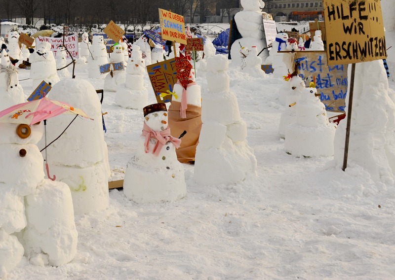 Rund 750 eiskalte Kerle bauten Berliner anlässlich der Schneemann-Demo