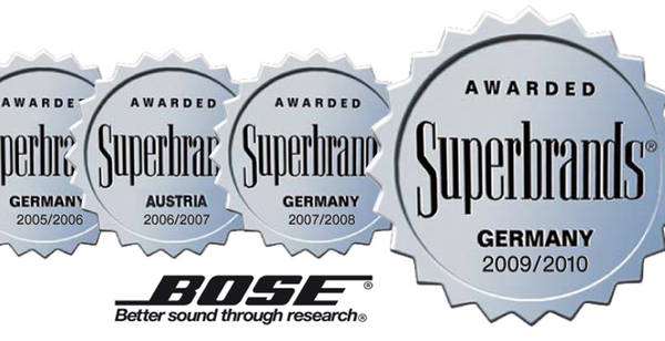 Das Hören der Lieblingsmusik in einwandfreier Klangqualität ist ein sinnhafter Genuss. Unzählige Musikliebhaber setzen bei der Wiedergabetechnik auf Bose. Nicht von ungefähr ist das Unternehmen eine der weltweit führenden Marken der Audio-Industrie und der Name für exzellenten Klang. Das wurde erneut honoriert: Bose ist Superbrand Germany 2009/2010 und steht damit zum dritten Mal in Folge nach 2005/2006 und 2007/2008 als eine der stärksten Marken Deutschlands auf dem Siegerpodest.