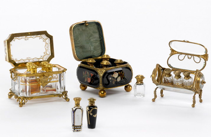 Ringfingerfläschchen aus der Biedermeierzeit, figürliche Flakons aus zartem Porzellan, kostbare Flakons bekannter Manufakturen wie Baccarat, Flakons aus den Häusern Chanel oderChristian Dior, die das Haute Couture-Verständnis verschiedener Epochen widerspiegeln. Sie alle gewähren uns einen Blick in die Vergangenheit und die Mode der jeweiligen Zeit. Namen wie René Lalique, François Coty, Elsa Schiaparelli und Coco Chanel stehen für gestalterisch außergewöhnliche Flacons des letzten Jahrhunderts.